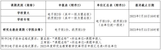 本次研究生教育教学改革研究课题申报类别共分为三类,学校重大研究生教育教学改革课题、学校专项研究生教育教学改革课题和研究生教改课题(学院自筹)。