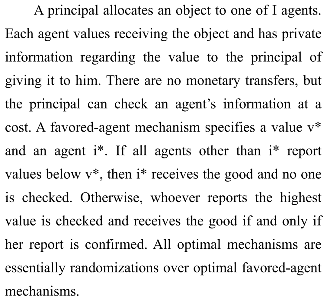 《Optimal Allocation with Costly Verification》by Ben-Porath,Dekel, Lipman, American Economic Review, 2014