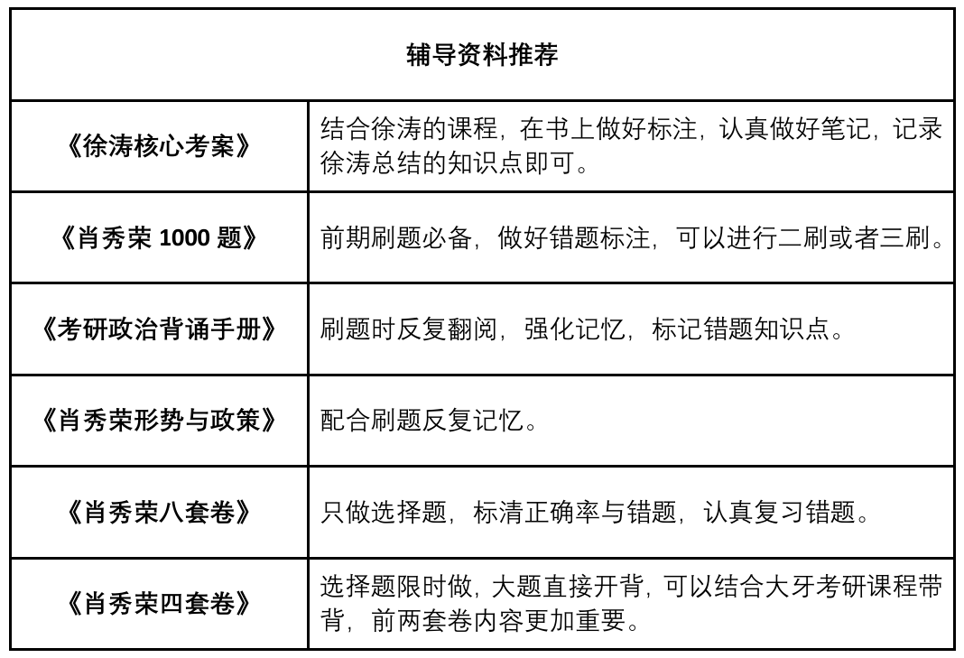 政治学习不必开展太早,建议在7、8月份开始。前期结合《徐涛核心考案》与肖1000题,可以1.5倍速观看徐涛课程,理解哲学逻辑与历史发展脉络。听完一节课,完成肖1000题里对应的习题,标注错题。开始学习阶段不必在政治上投入过多精力,可以在学习数学、专业课疲惫之时学习视频课程,认真做好笔记即可。