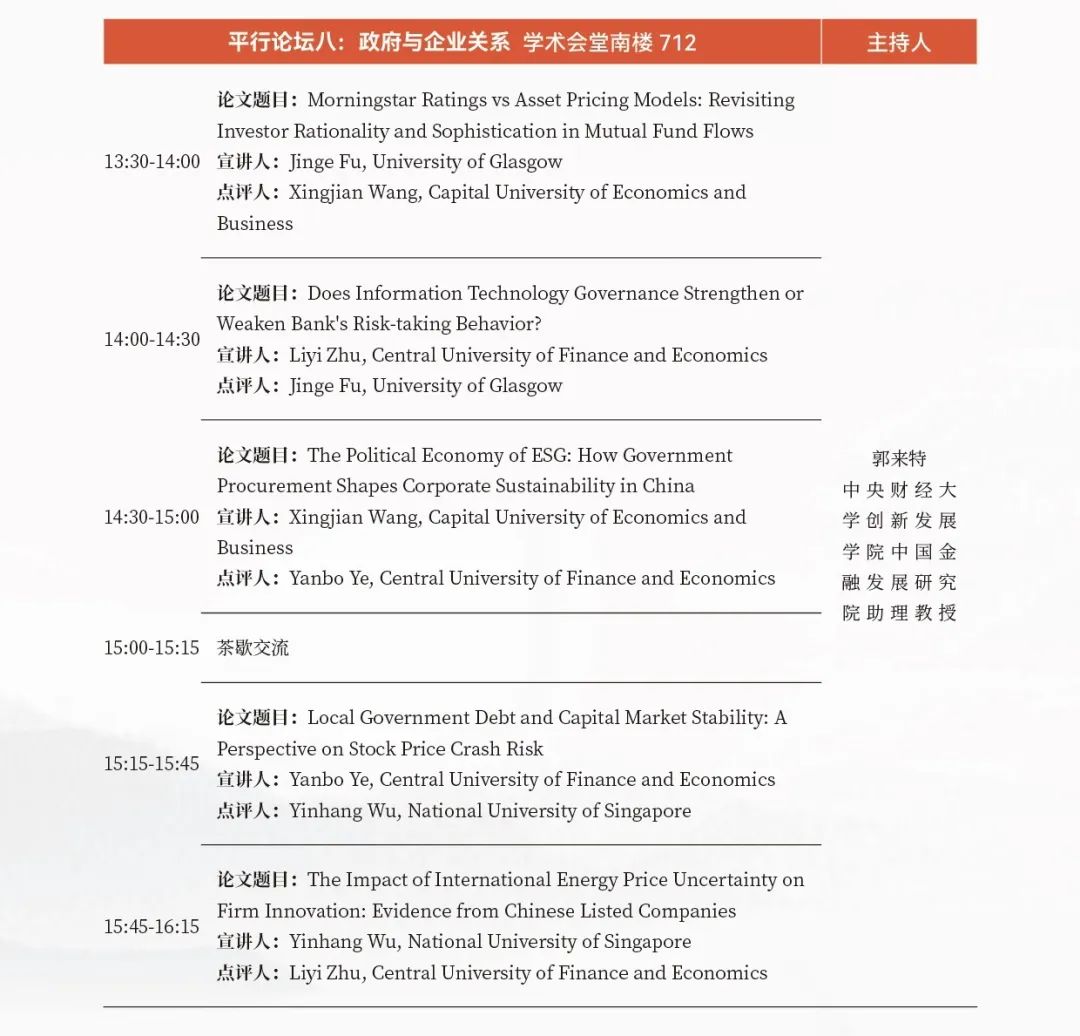 为深入学习贯彻党的二十届三中全会精神,以金融高质量发展服务中国式现代化,伟德国际1946定于2025年7月12日举办“2025金融市场与政策会议”。本次会议将邀请国内外知名专家学者,围绕“政府政策、金融市场与企业高质量发展”等前沿议题展开深入研讨。会议旨在搭建高水平的学术交流平台,促进金融理论与实践的深度融合,为推动我国金融业高质量发展贡献智慧与力量。现将会议内容和议程介绍如下: