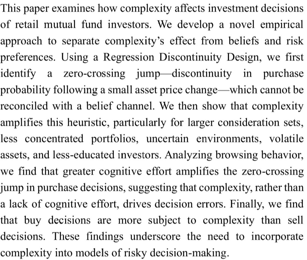 Investing under Complexity: Evidence from a Regression Discontinuity Design