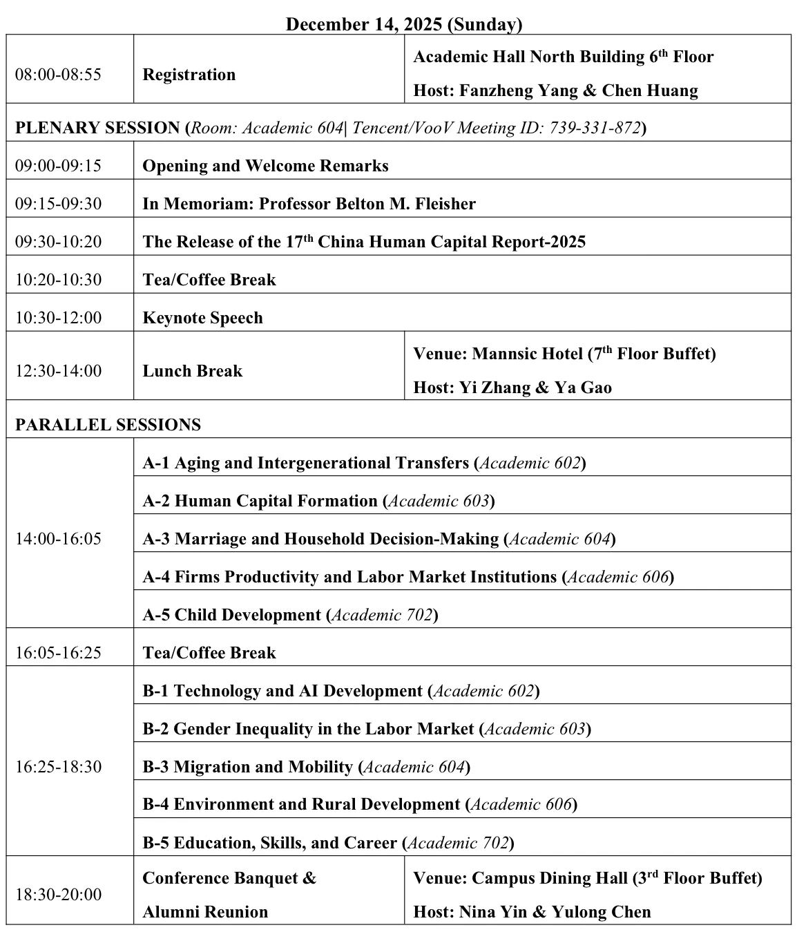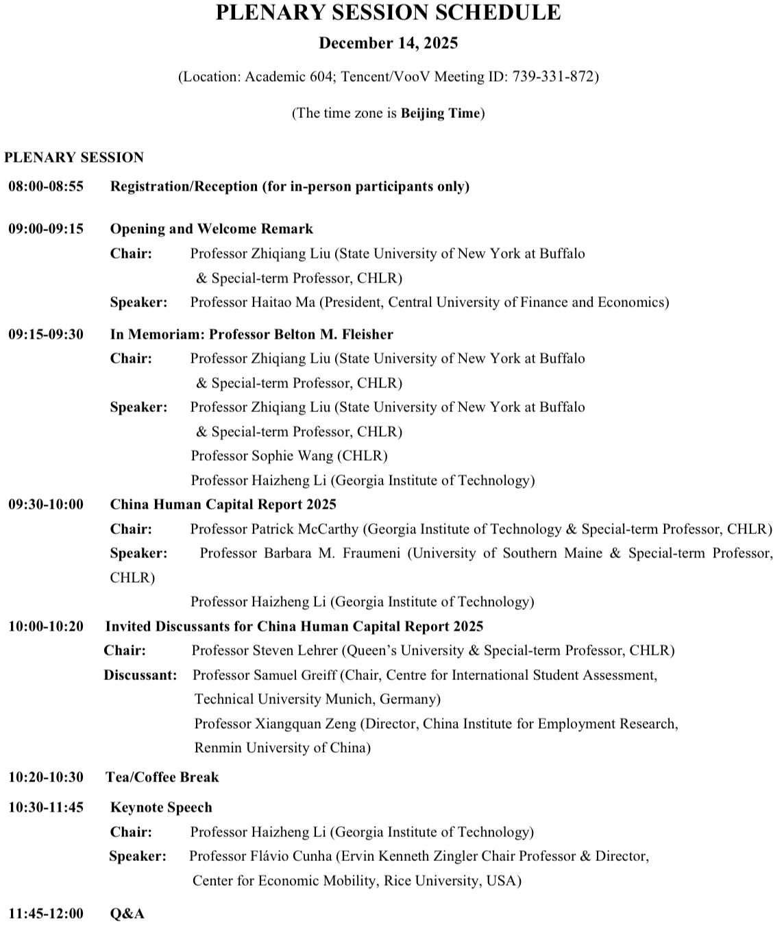 2、PLENARY SESSION SCHEDULE