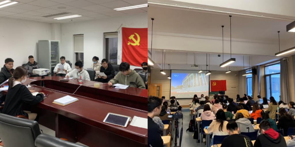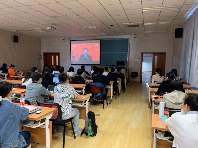 10月16日、10月24日,本科生党支部和博士生党支部、20级/21级/22级研究生党支部联合组织观看了党的二十大开幕会和闭幕会。11月3日,本科支部在学术会堂举行“全面学习贯彻党的二十大精神”专题研讨会议。党支部书记侯姝婧首先为大家解读了党的二十大报告核心要点,介绍了报告中的新提法新理念,并阐述了报告精神对实际学习、工作的指导意义,要求大家学深悟透并切实与自身发展更好融合。