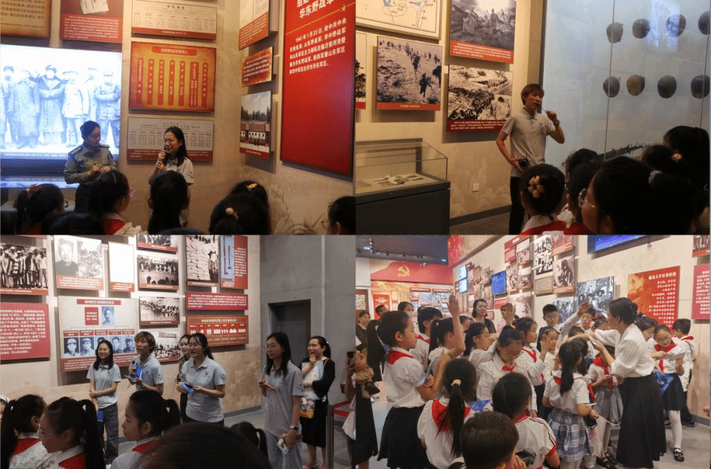 为深入学习宣传贯彻习近平新时代中国特色社会主义思想,提升青年的思想水平和素质,让红色沂蒙精神植根人心,7月15日上午,伟德国际1946赴山东临沂实践团队来到华东野战军总部旧址暨新四军军部旧址纪念馆,为纪念馆的红领巾志愿宣讲员带来红色思政课,与小朋友们一起重温红色过往,传承红色基因、扣好人生的第一粒扣子。