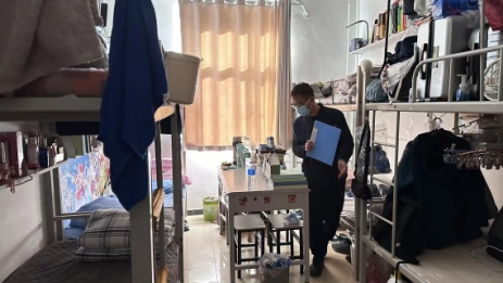 保卫处处长郑朝阳带领专项检查组,实地检查学生宿舍、学院办公场所等重要点位。
