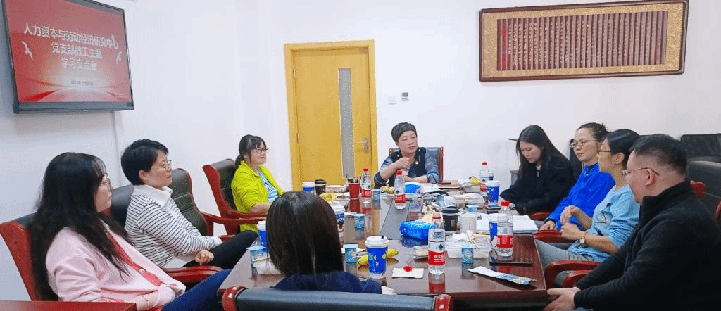 为进一步加强基层党组织建设,增进老师们的工作与专业交流,2024年10月25日中午,人力资本与劳动经济研究中心党支部开展了教工学习交流活动。联系该党支部的学院党委常务副书记王颖、中心全体全职工参加了此次交流会,活动由中心党支部书记张亿主持。