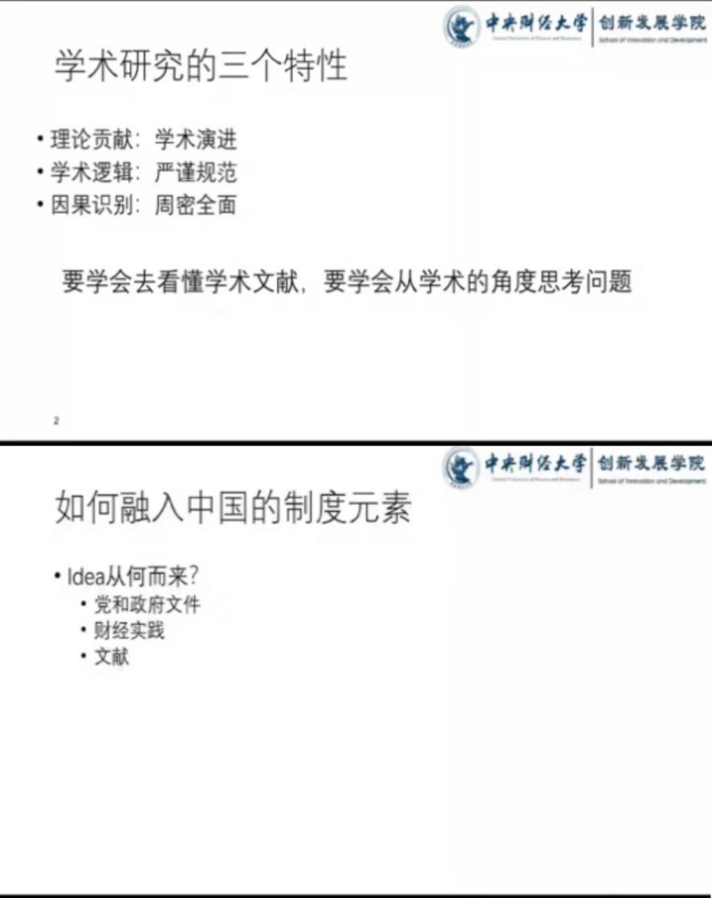 他指出了学术创新对于科研的重要性,而学术的真创新,可以从横向扩展和纵向拓展入手,深入挖掘,将一个主题真正弄懂弄透。他强调要将论文写在大地上,融入中国的制度元素,从群众中来,到群众中去,学术创作的根源在于人民,目的也是服务于人民,需要扎根中国大地研究真问题,服务真现实。