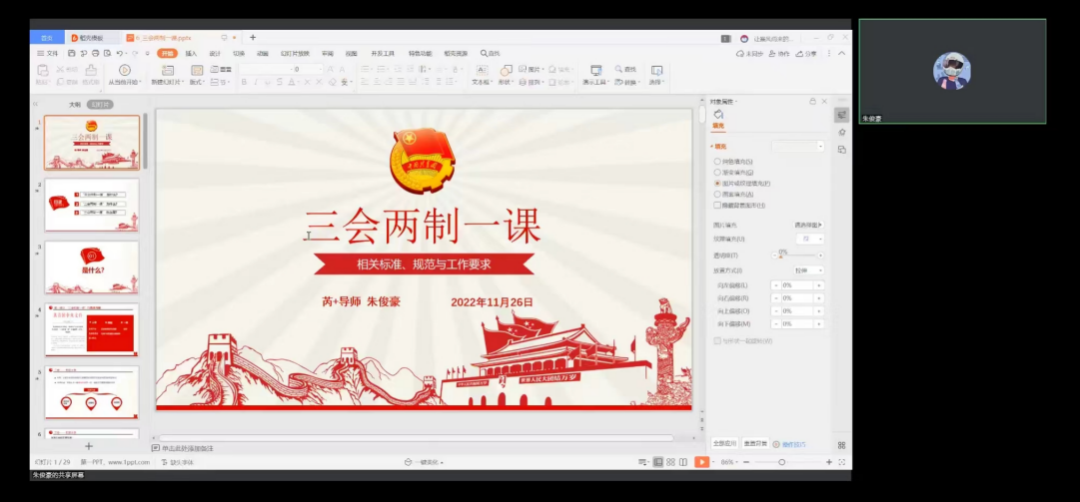 朱俊豪讲解了“三会两制一课”的相关标准、规范与工作要求,以及各项工作开展过程中的注意事项,希望每位团员正确理解和落实“三会两制一课”。