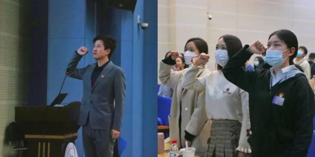 在孙黎华同学的领誓下,新老团员重温入团誓词