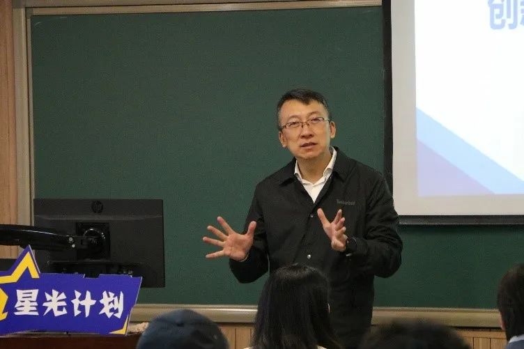 首先,李汉军书记为启动仪式致辞,对各位导师的精心筹划与倾力支持表示衷心的感谢,对同学们未来职业发展提出殷切的期望。他指出“星光计划”是学院链接校友资源、社会资源,着力打造的职业素养提升平台,不同行业导师的加盟、订制化专题内容、渐进式的课程方案、深层次的交流互动、一体化的成长助推,能够多角度地满足同学们对行业的认知需求和职业发展的能力诉求。希望同学们珍惜平台,通过系列课程的学习,开拓视野、提升就业能力,树立正确的择业观、就业观,在未来人生道路上,征服星辰大海。