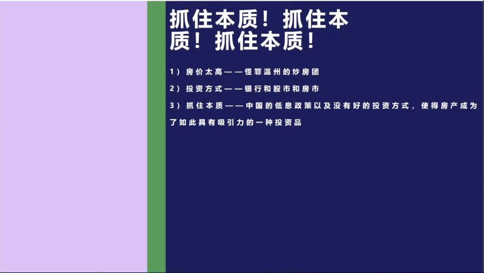 他通过分析“大学生为什么找工作难?”以及“房价为什么过高?”这两个书中经典的例子,分享了他从书中得到的收获,提醒我们在研究经济学问题当中,要辩证地思考问题,最重要的是要抓住事物的本质与核心。