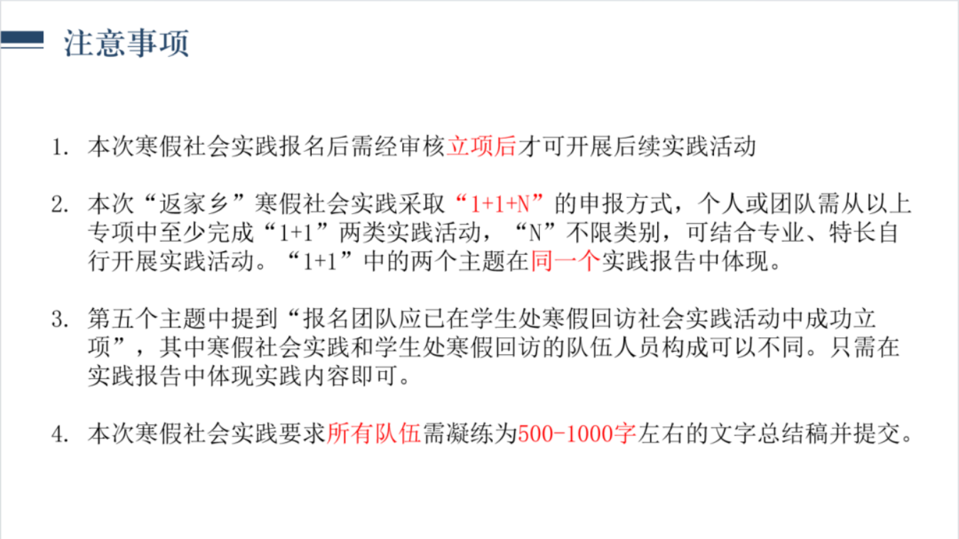 最后,学术实践部为同学们提供安全指南,对社会实践过程中的的安全注意事项作出强调,提醒参与实践的同学牢记“安全第一”观念,进行每日安全"零"报备,确保实践活动安全、顺利地开展。