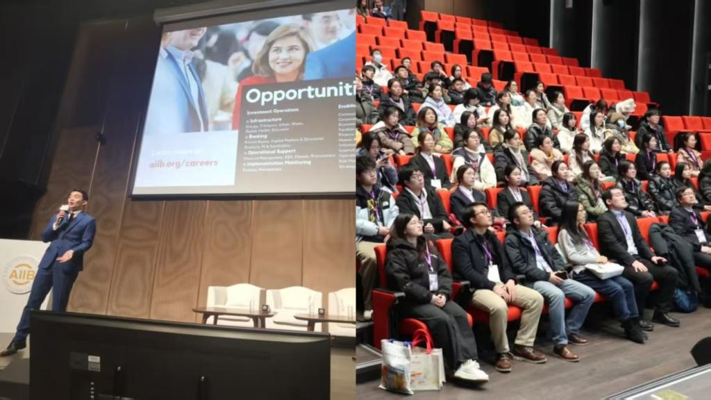 随后,高级人力资源官布莱恩·卡洛·伊波利托以生动的语言和具体案例,分享了亚投行在人才招聘、实习项目及青年人才培养方面的政策与实践。他向学生们详细讲解了亚投行的人才需求、招聘标准、职业发展路径以及青年人才计划,鼓励学生们结合自身专业背景和职业规划积极探索国际化职业机会。
