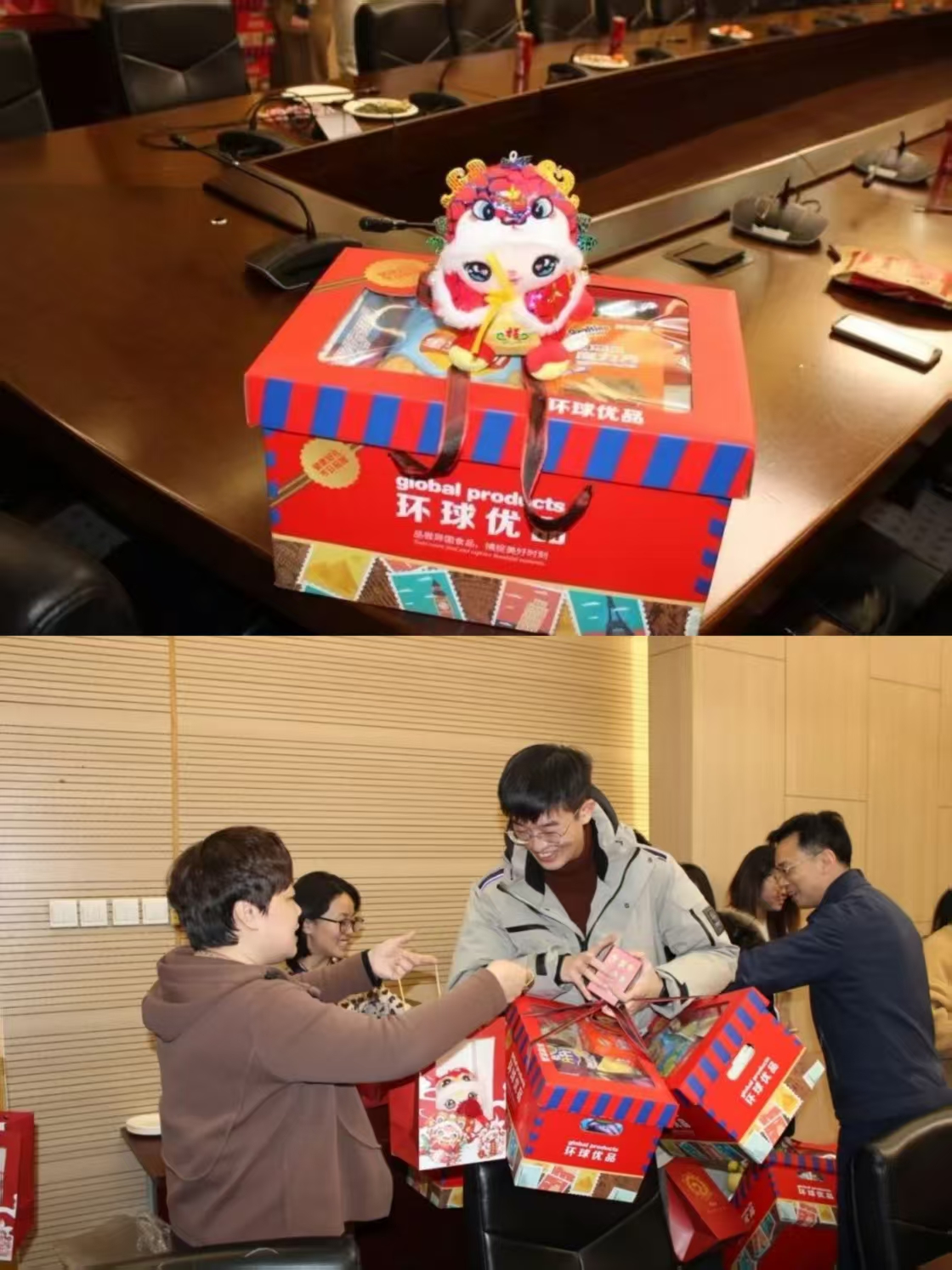随后,老师们为同学送上了零食大礼盒和蛇年小玩偶。