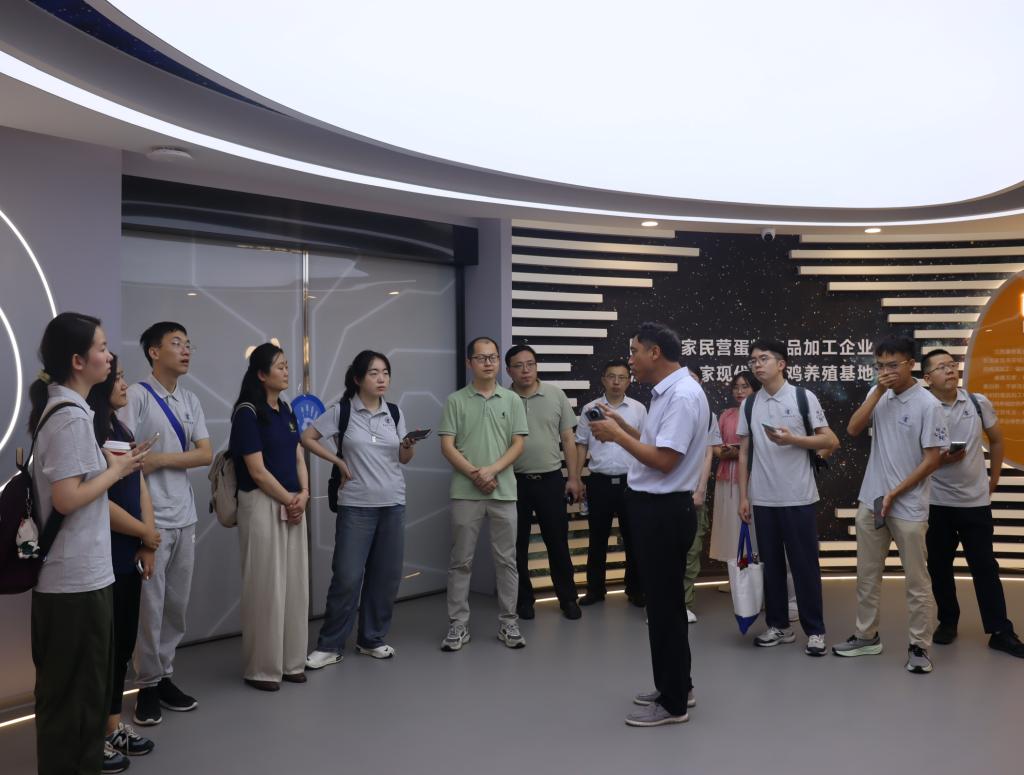 当日下午,团队来到最后一站江苏康德蛋业有限公司。在全封闭的智能化生产车间,AI视觉检测系统精准筛选鸡蛋,自动化包装线高效运转,全程几乎无需人工干预。负责人介绍,公司构建了从饲料研发、蛋鸡养殖到蛋制品加工的全产业链体系,智能化设备大大提高了产能和质量。
