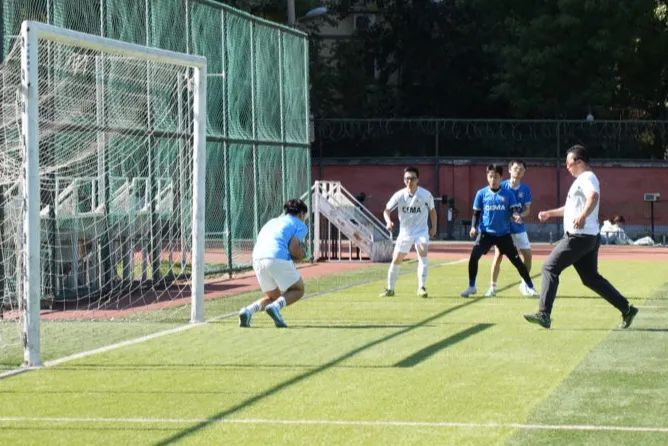 随后,校友队禁区射门造成对方手球,16号宋骁主罚,骗过门将打入右侧底角,校友队3:3扳平比分。紧接着校友队5号中路空当果断突破兜射近角,4:3逆转比分,再下一城!而随着校友队10号赵超(2007级)与33号禁区内配合后打门得手,比分扩大为5:3。虽然最后时刻在校生队17号沈一甲(2019级)吊射入网,但也无法扭转比分,最后比分被定格在了5:4。