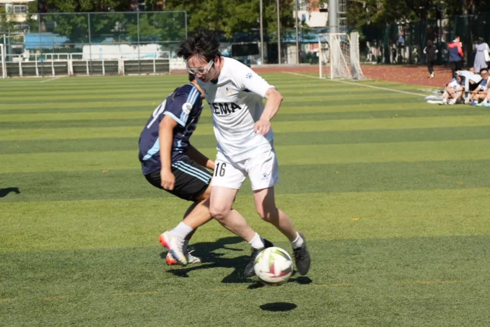 这场比赛中,校友队以全新特制的球衣亮相,这套球衣以蓝色和白色为主色调,与在校生队服相得益彰。球衣前胸的“CEMA”字样象征着大家共同的校园情感。背后印有校友的姓名、年级和号码,这些数字代表了每位校友在校园中留下的足迹和记忆,让比赛更显纪念价值。