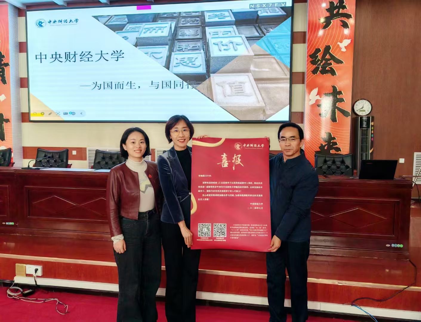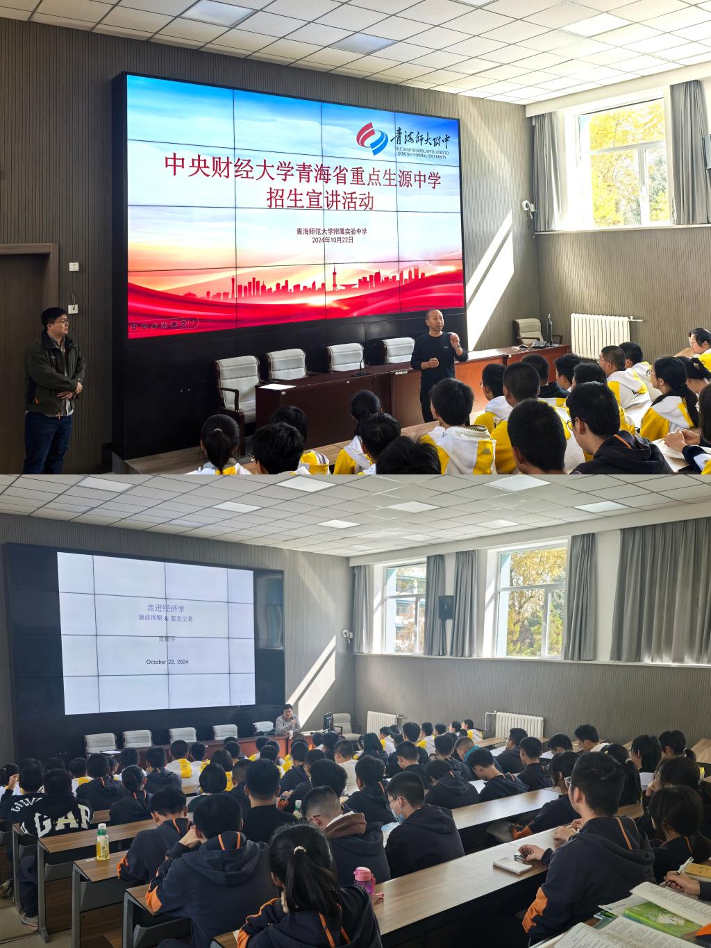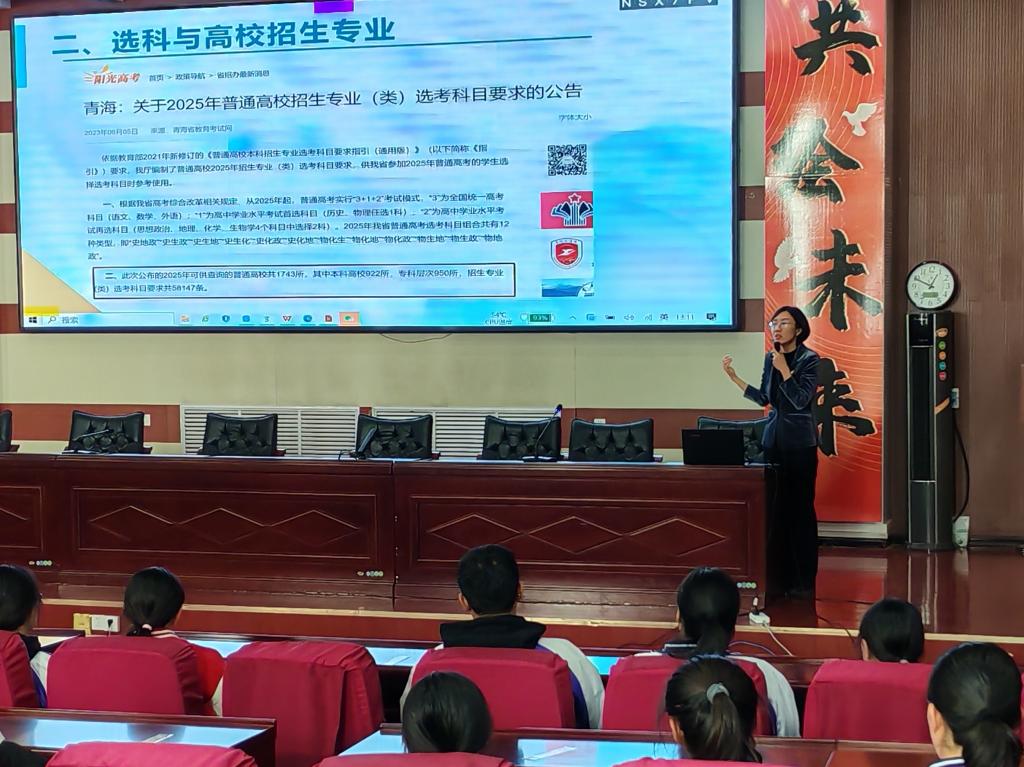 10月22日中午,招生宣传组前往青海省重点中学青海湟川中学进行生源基地校回访,赠送了湟川中学喜报,与中学教务处主任陶世元进行了亲切交流,并面向高一学生成功举办招生宣传专题讲座。