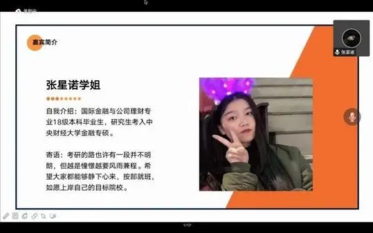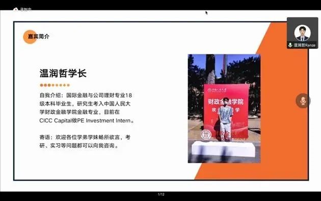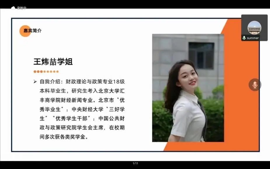 王炜喆(本科:财政理论与政策专业),研究生考入北京大学汇丰商学院财经新闻专硕。她详细讲述了自身选择跨考其他专业的理由与权衡,在解答同学问题的过程中,她谈及自己对母校的热爱,提醒同学们应珍惜本科时光,做好规划、努力提升自己。