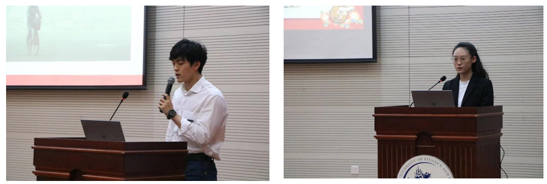 2022级硕士研究生马驰讲述了自身参与模拟提案大赛、为祖国建言献策献策的实践经历,结合青年在抗击新冠疫情、乡村振兴等各条战线挺身而出、勇挑重任的担当作为,表示青年始终走在时代方阵的前列,鼓励同学们运用所学,积极践行“财经报国”的理想,把个人理想与祖国前途、民族命运联系起来,让个人梦随中国梦一起璀璨、一起光彩。2020级本科生倪冰慧分享了在川南边陲参加“青苗工程”实践活动的经历。她以乡村振兴事业见证者的视角,讲述了筠连县党员干部对脱贫攻坚事业无私奉献的感人故事,并从“新时代十年的伟大变革对乡村的影响”的角度阐述了她对二十大精神的深度思考。