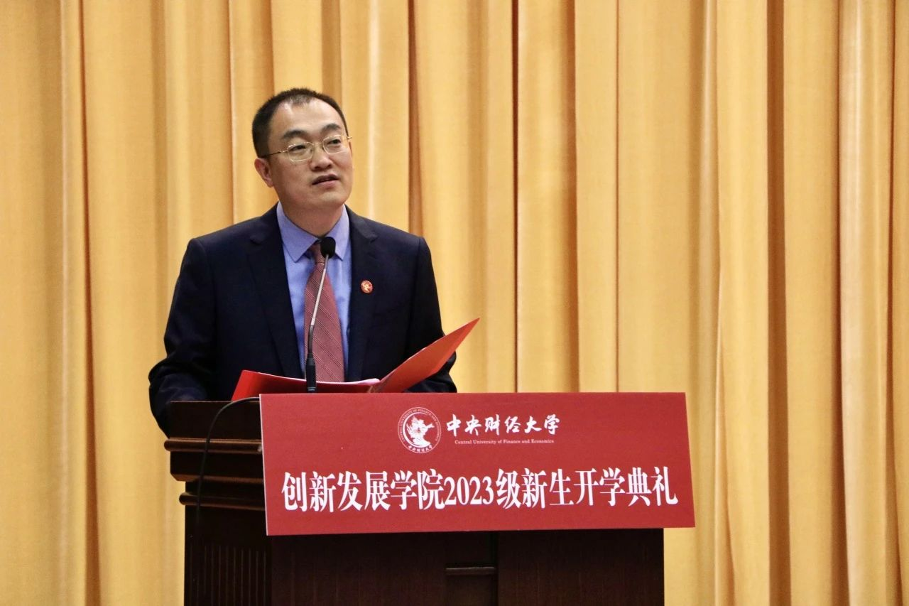 首先,李涛教授为典礼致辞,代表全院师生对282名新生的到来表示祝贺和欢迎,欢迎同学们在最美的青春年华遇见伟德国际1946,共同见证学院的发展,一起打造学院人才培养与学科建设的“金名片”,希望同学们通过高强度的数理训练学会在缜密求证中去发现和接近事实真相;通过高标准的国际化培养学会用世界眼光探索我国经济学发展的时代命题;通过朝气蓬勃的文化涵养学会在教育实践中以“建设者”的身份参与到学院发展。同时,也表达了几点期许:一是以敬畏之心求索真学问,尊重知识,敬奉真理,回答好中国经济学的“时代之问”;二是以进取之心锤炼真本领,让追求卓越成为一种习惯,志存高远,脚踏实地;三是以诚挚之心解决真问题,不断扩展自己的认知,敏锐而深刻地看待经济社会发展的现实,并积极寻求解决方法,做敢于直面问题、解决问题的行动者和参与者;四是以从容之心应对不确定性,坚持美好梦想,在财经报国的道路上坚定从容地走下去,以奋斗姿态拼闯出美好的未来;五是以包容之心拥抱新生活,包容差异,悦纳自己,用阳光积极的心态拥抱大学生活。