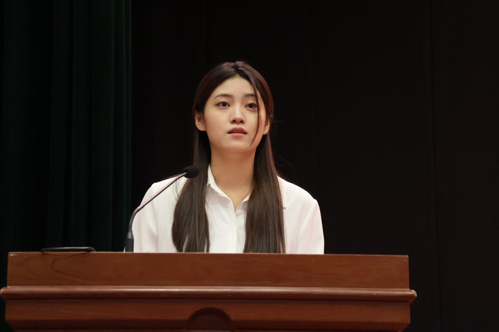 中国金融发展研究院2023级硕士生阮薇作为在校生代表发言。她分享了自己的成长感悟,与新生共勉:一是笃志力行,积微成著;二是沉潜蓄势,静水流深;三是团结合作,开放交流。她鼓励同学们在挑战中磨练意志、坚定信心、迎难而上,走出属于自己的精彩人生。