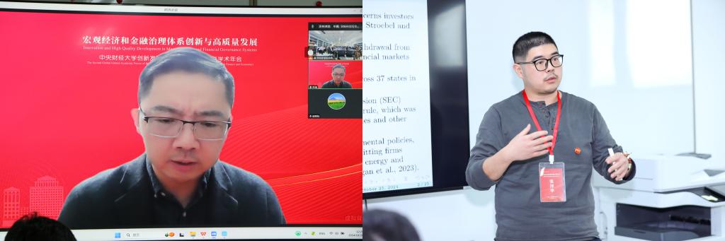 平行论坛一的主题为“绿色经济与绿色金融”,由中国金融发展研究院副教授张潇主持。中国金融发展研究院本科2008级校友、美国雪城大学的单禹教授和中国金融发展研究院本科2008级校友、湖南大学的张泽华教授就绿色经济与绿色金融的话题分别作了“Financial Impacts of Environmental Regulations: Socioeconomic Inequity in a Greening Economy”和“Jurisdiction and Confession: Evidence from the Regulatory Enforcement in Climate Finance”的报告。