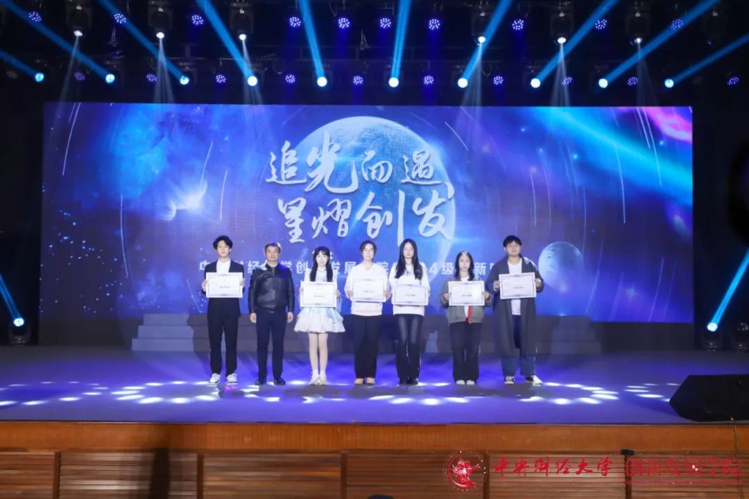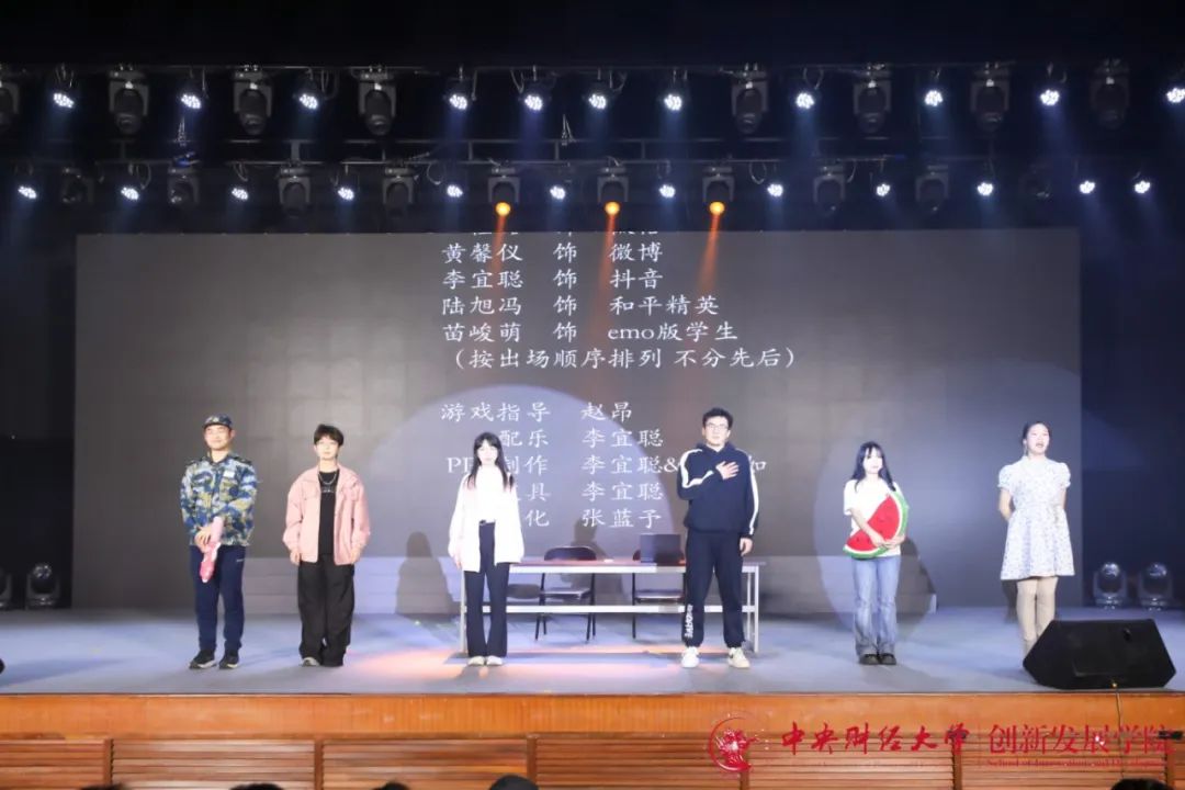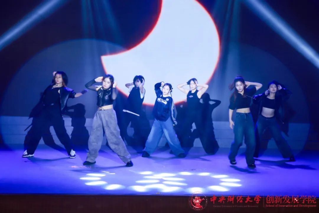 热情似火的开场舞《Girls Never Die》点燃了全场。随后经济学(数理经济与数理金融)24-1班和金融学(国际金融与公司理财)24-2班同学分别带来洋溢着青春活力的新生合唱《夜空中最亮的星》、《稻香》,别出心裁的舞台设计使得节目精彩纷呈。新生的大学梦想好似随着扔出的纸飞机一起展翅飞翔。胡家怡、李若璇、高奕凡、张语婷和胡乐乐带来的舞蹈《Imaginary Friend》,引起观众阵阵欢呼。