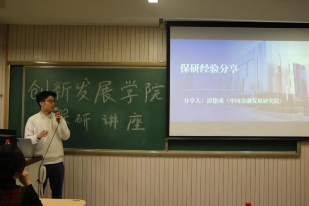房铭成同学(国际金融与公司理财)已保研成功,即将进入北京大学光华管理学院攻读金融专业硕士学位。他提出了学业重要性的一个排序:“排名优先于英语,英语优先于科研,科研优先于实习”。此外,房铭成同学还总结了自己在清华经管MIM、北大光华以及复旦管院MIF的面试经历,向同学们阐释了在不同高校面试过程中可能面临的挑战。