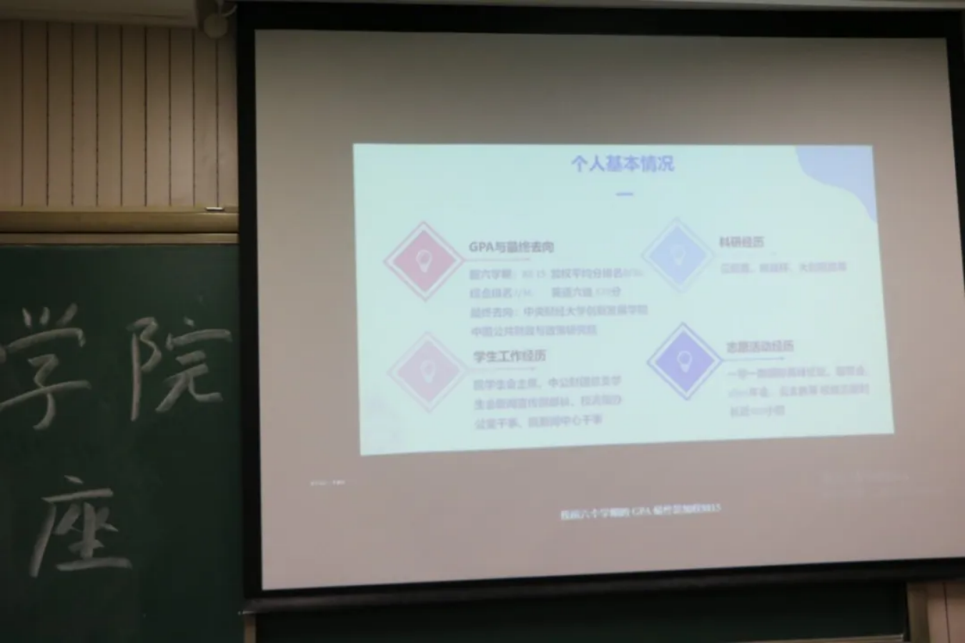 赵俪婷同学(国际金融与公司理财)已保研成功,即将进入伟德国际1946的中国金融发展研究院攻读金融专业硕士学位。她对学院现行的保研政策进行了介绍,从院内保送角度概述了在不同阶段应做的准备工作以及如何调整心态以应对保研过程中的挑战。最后,她鼓励大家:“此去山重水复,愿诸位轻舟终过万重山。”