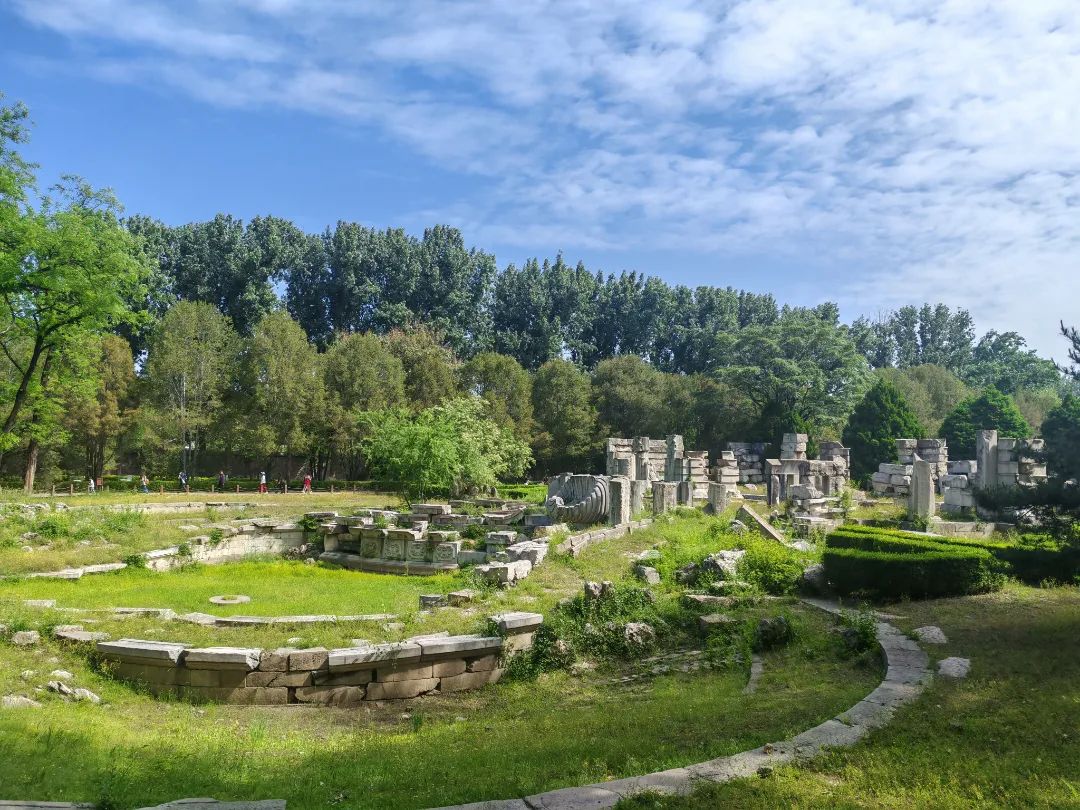 沿着福海蜿蜒的小径前行,走进西洋楼遗址区域。镌刻着华彩花纹的大理石柱静默伫立,仿佛在诉说着往昔的辉煌与沧桑;海晏堂和大水法遗迹在阳光下辉映着厚重的历史传承。在讲解员的引导下,大家放慢脚步,静静感悟历史的沉淀,细细体会这些断壁残垣中蕴含的顽强生机与坚韧力量。此刻,历史不再仅仅是书本上的文字与图片,而是化作眼前可触可感的印记,让心灵得到了净化与升华。