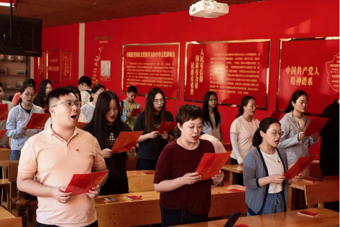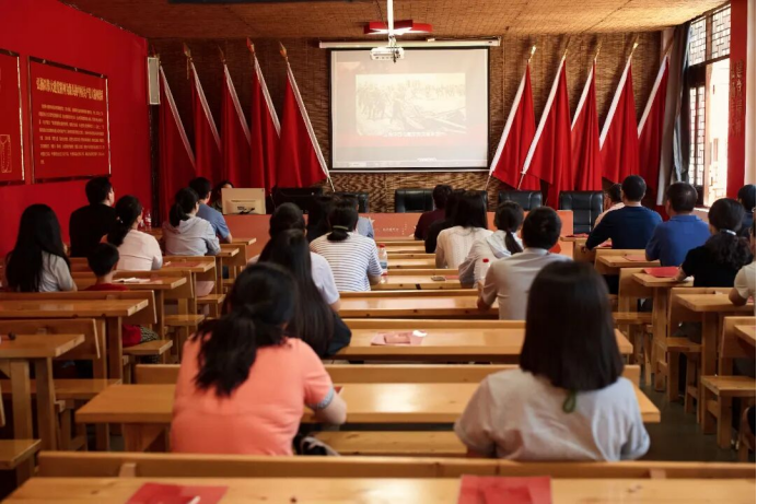 教师们齐聚在头道梁村放映室内,共同观看头道梁村人民抗战历史纪录片。纪录片中,真实记录了头道梁村人民在抗日战争时期,面对日军的残酷侵略,毫不退缩,英勇抗争的壮丽史诗。当熟悉的旋律响起,《没有共产党就没有新中国》《三大注意八项纪律》等一首首激昂澎湃的红歌在空气中回荡。教师们饱含深情,放声高歌,歌声嘹亮,气势恢宏。