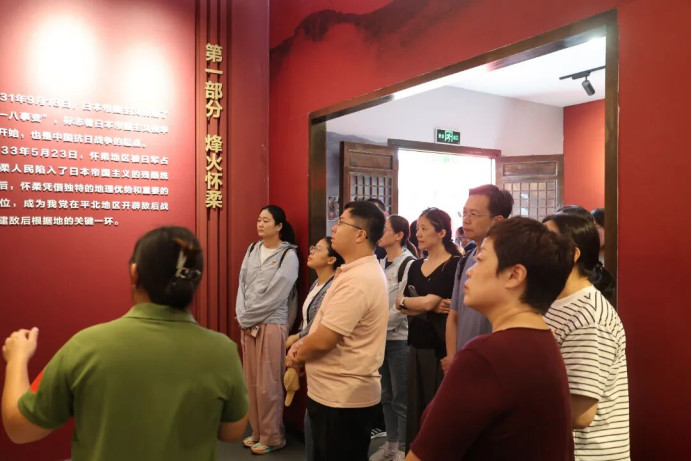 为纪念中国人民抗日战争暨世界反法西斯战争胜利80周年,传承和弘扬伟大的抗战精神,伟德国际1946于9月7日组织教师前往怀柔区雁栖镇头道梁村平北抗战爱国主义红色基地开展“平北忆峥嵘・师者担当传薪火”抗战精神主题教育活动,让教师重温峥嵘岁月,汲取奋进力量,传承红色精神。
