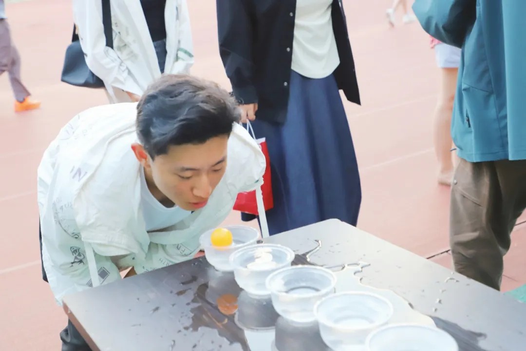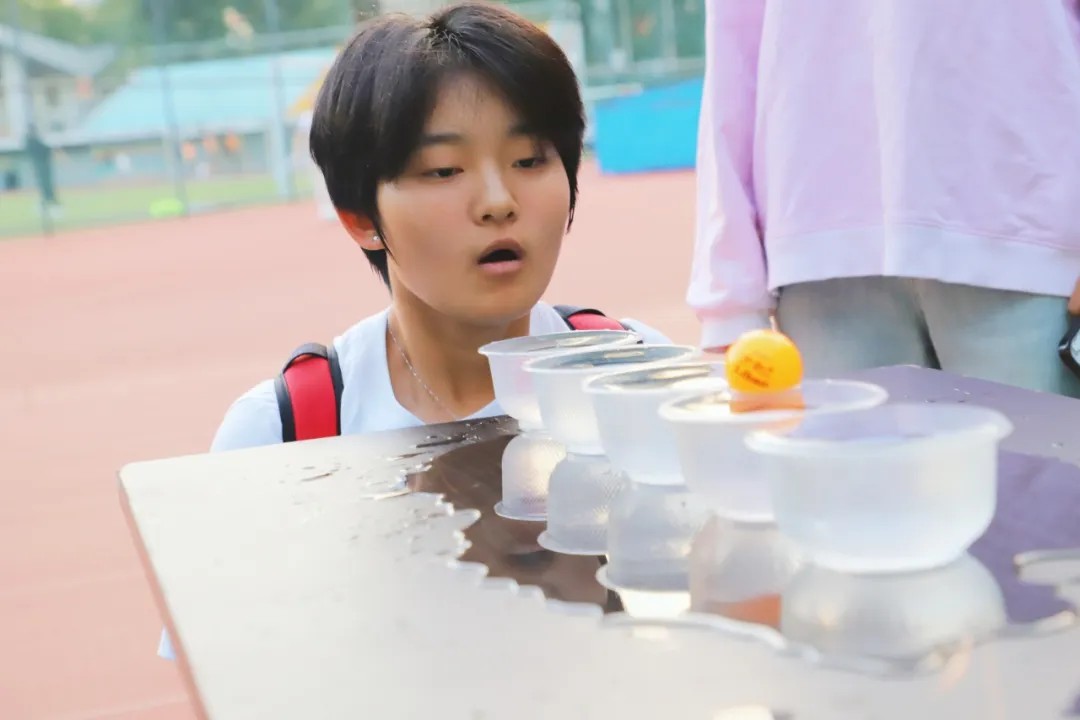 古人常于杯中邀月,今番我们以乒乓球为月,在五个水杯间流转。游戏者需屏息凝神,将球从一杯吹向另一杯,如同月亮在星河流转。在这个过程中,同学们屏息凝神,全神贯注,在游戏中体会到了专注与坚持的重要性,也仿佛亲历了一次“杯中邀月”的古典雅趣。