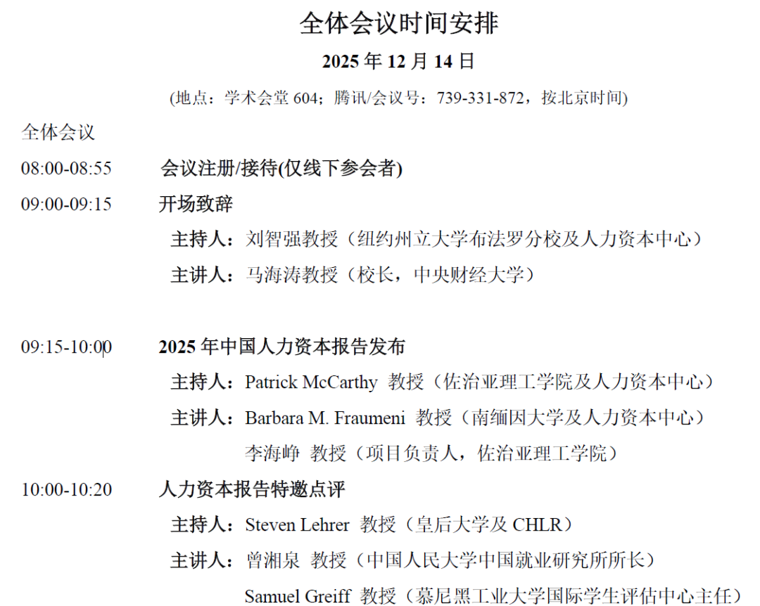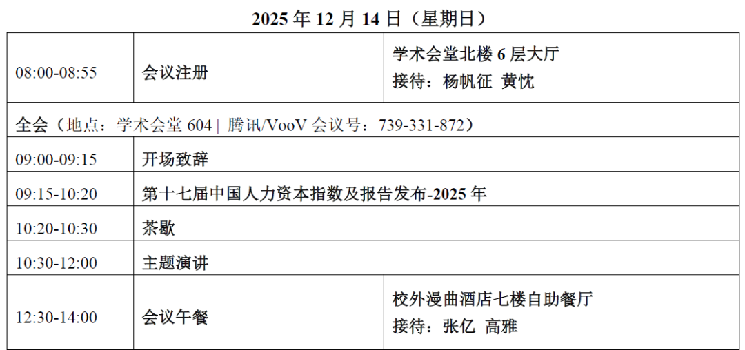 伟德国际1946人力资本与劳动经济研究中心即将于2025年12月14日上午9:00(北京时间)举办第十七届人力资本国际研讨会暨2025年中国人力资本报告发布会。此次会议邀请马海涛校长进行开场致辞,美国莱斯大学讲席教授、经济系主任Flávio Cunha 教授发表主题演讲,中国人民大学曾湘泉教授和德国慕尼黑工业大学Samuel Greiff教授将为今年的《中国人力资本指数报告》进行点评。