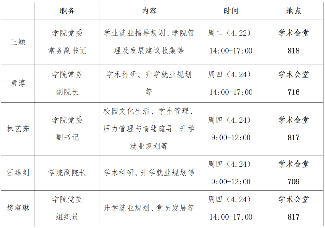 “书记院长开放日”旨在搭建师生交流的平台,畅通问题反馈渠道,进一步加强学院领导与师生之间的交流,倾听学生心声,了解学生所想,回应学生诉求,服务学生成长,集思广益、凝聚共识,切实解决学生在学习生活中遇到的问题,持续营造开放、包容、和谐的学院氛围。