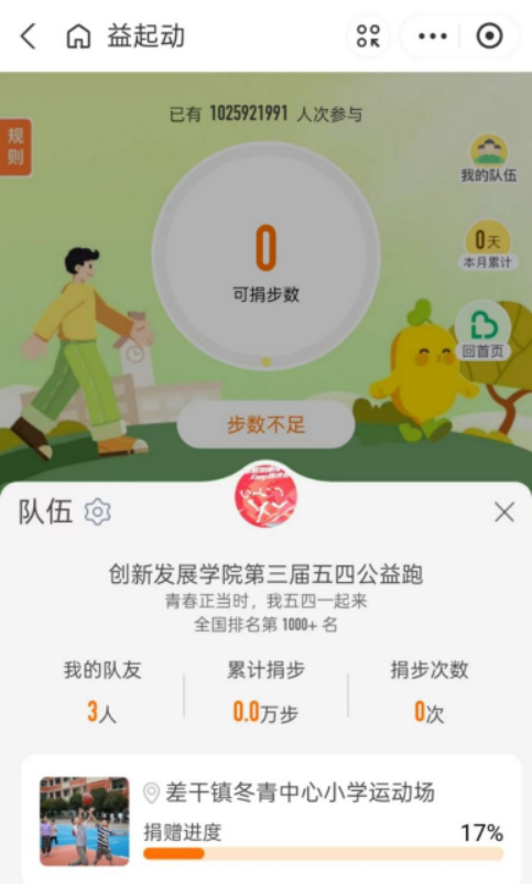 进入操场奔跑前,需来到操场打卡点登记参与时间和当前支付宝步数/Keep公里数,完成后需再次回到打卡点,确认完成后即可获得操场打卡点的印章。打卡点会提供运动需要的水、纸巾等必需品,还设有主题签名板,不要忘了留下你的足迹或对五四运动的感想哦!本次活动所积累的步数将在支付宝上进行捐赠,助力乡村学校拥有自己的田径场,为乡村振兴贡献自己的青春力量!