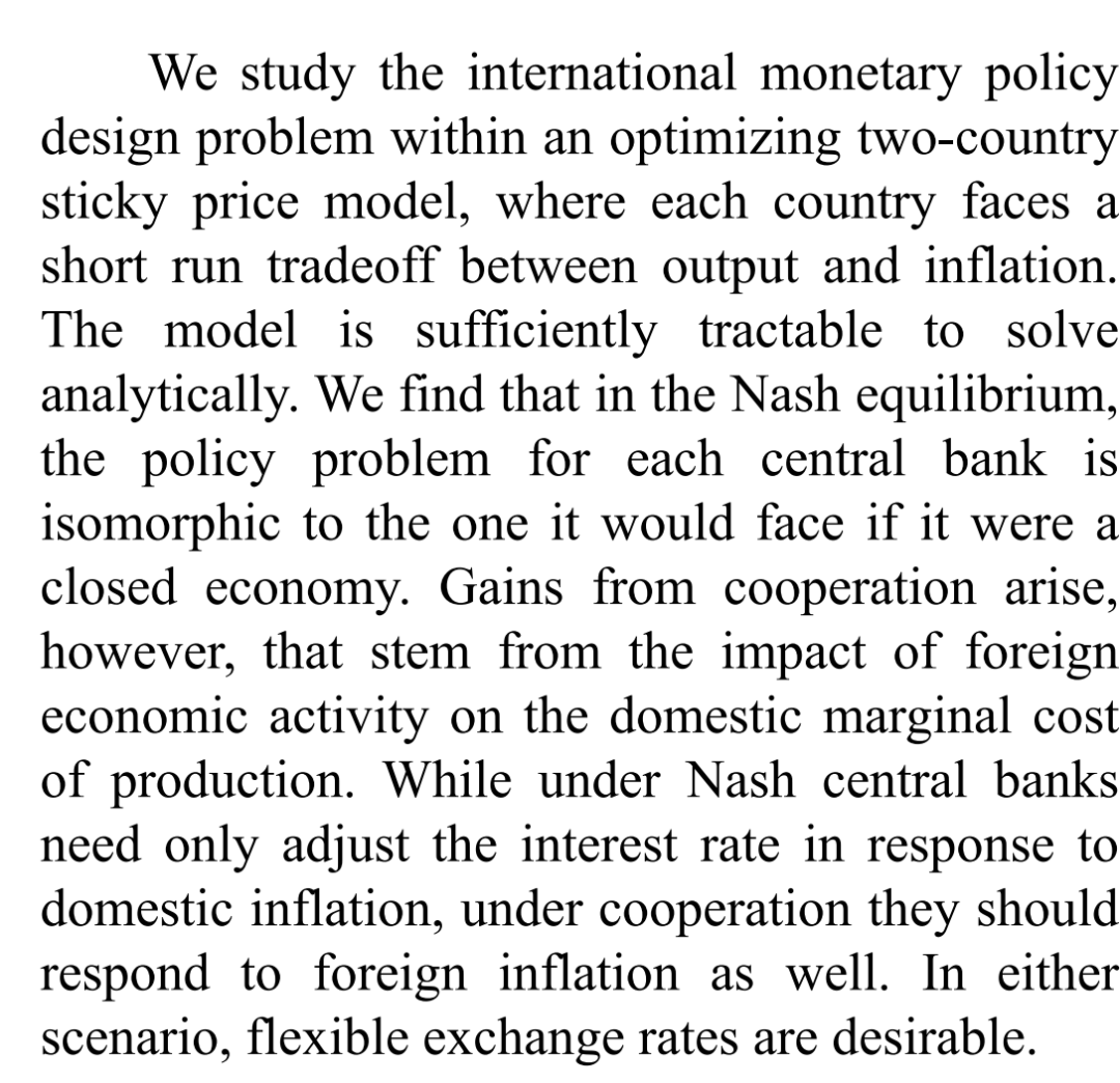 学术沙龙|货币经济讨论班(77期):一个简单的国际货币政策分析框架 分享论文A simple framework for international monetary policy analysis (Journal of Monetary Economics , Richard Clarida, Jordi Galí, Mark Gertler , 2002)分享人王忏(金融学院,副教授)时间2025年3月20日(周四)下午19:00-21:00地点学术会堂712主持人王忏(金融学院)赵军柱(伟德国际1946中国经济与管理研究院)论文摘要活动对象伟德国际1946金融学院学院学生人数规模30人主办单位伟德国际1946中国经济与管理研究...